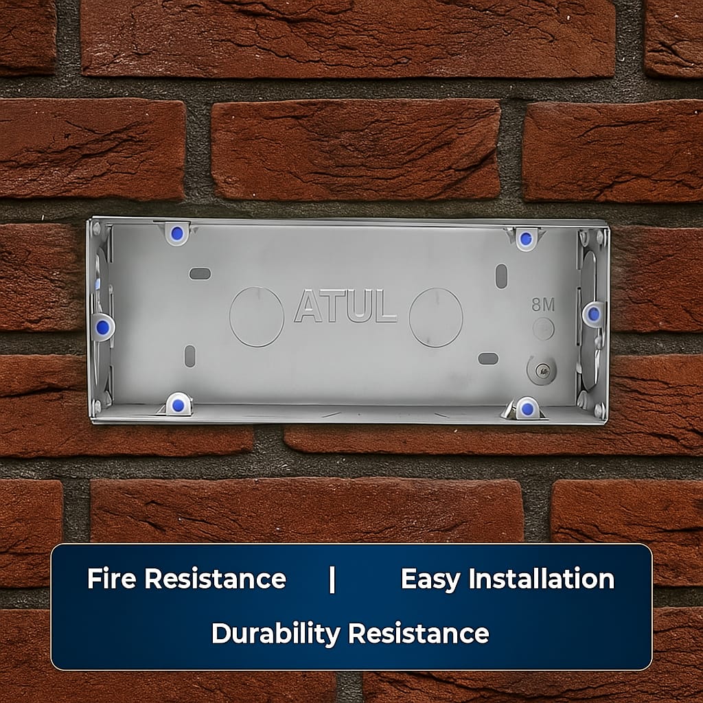 1–2 Module BoxSKU: EB-1-2M Depth: 50mm Finish: Zinc plated Knockouts: Ø20/25 Grounding lug Quick View