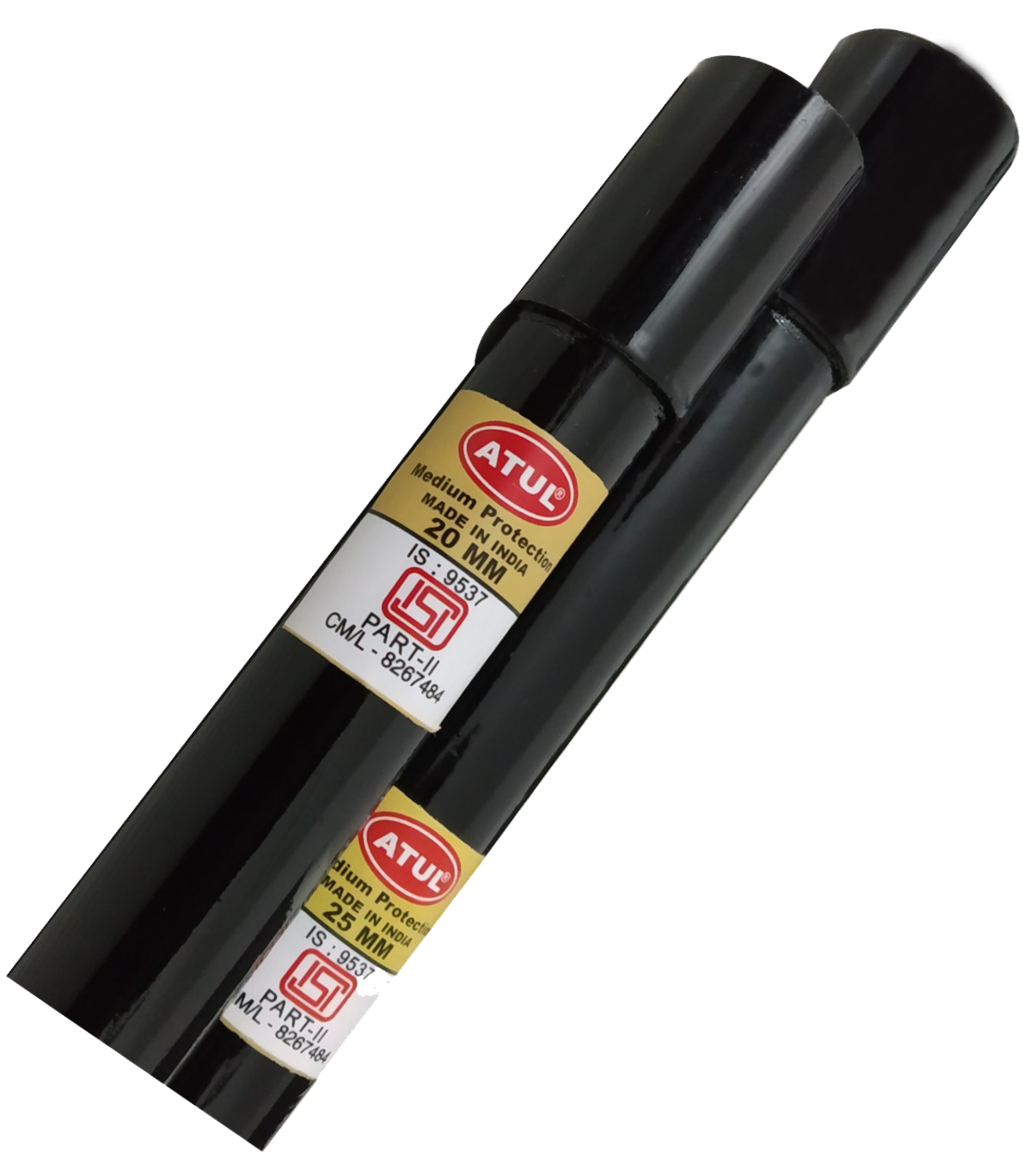 ATUL MS conduit pipes are precision-engineered to comply with IS:9537 Part 3/1983 standards, ensuring they meet both Indian and international requirements. made using state-of-the-art technology, these pipes are made from a specially formulated plasticised super high-impact material, enhancing their durability and impact resistance. Each pipe proudly bears the ISI mark and the ATUL brand name, along with detailed size and dimension specifications, ensuring both quality assurance and easy identification.